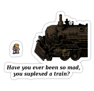 The Sabin Train Suplex is a moment in the game Final Fantasy VI for the SNES during which the game’s character Sabin performs a suplex on an enemy boss called the Phantom Train. The absurdity of Sabin performing a wrestling move on a moving train with succes and the battle animation of seeing him lift up a train in the air made the fight one of the most memorable moments within the game.