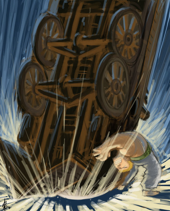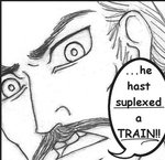 On July 29, 2013, DeviantArt user EiffelArt uploaded an image showing Sabin lifting up the Phantom Train (shown below, left),[6] which managed to get over 10,000 views and 750 favorites as of March 2014. On October 23rd, 2013, Redditor Jin_Winspear uploaded an image to the r/gaming sub-Reddit showing Sabin performing the suplex on the Phantom Train (shown below, right),[7] which gathered a total score of around 1,850 with 3,000 upvotes as of March 2014. On November 9th, 2013, Tumblr user 1986tigerlion made an image post[9] showing several pieces related to the Suplex, two being Zac Gorman’s comic and Jin_Winspear’s image, which managed to gather nearly 12,000 notes within the first three months after posting.