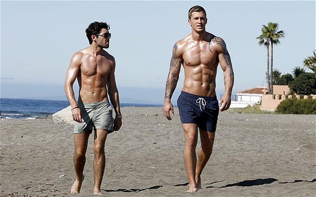 On June 19th, 2004, Simpson coined the term “sporno” in an article in Out[4] magazine to describe sports stars who were “fetishizing themselves.” On June 10th, 2014, The Telegraph[1] published an article written by Simpson which described a new wave of body conscious men influenced by social media culture with “chiselled bodies, muscle enhancing tattoos, piercing, adorable beards and plunging necklines” labelled as “spornosexuals.” The article included a photograph of Dan Osborne, a cast member of the reality television series The Only Way is Essex, as a an example of the spornosexual aesthetic (shown below, right).