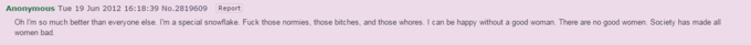 An Urban Dictionary definition for “normies” was submitted in 2004.[1] One of the earliest known uses of “normies” on 4chan was in a post in a thread on the Japanese Culture (/jp/) board in 2008.[2] The earliest known use of “normies” on /r9k/ was made in 2012.[3]