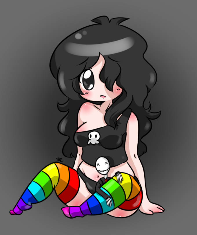 /x/-tan is the board-tan for 4chan’s Paranormal board. She is a pale-skinned young woman with messy black hair, a black skull tank top, and rainbow-colored tights. Most notable of her appearance, however, is her left eye, which is shown to be either a glowing red or black with a red pupil. She is considered shy and intelligent, but also paranoid, and dabbles in witchcraft and conspiracy theories. She is commonly shown to be afraid of /b/ and is said to have been in a relationship with /tg/-tan.[8][9]