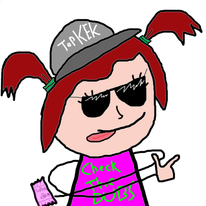 Sometimes called Keksandra, [s4s]-tan is a young girl used to portray 4chan’s dedicated shitposting board, Shit 4chan Says. She is often seen with two pigtails, a Top Gun Hat, and an ankle-length dress with an image of a meme on it. Though occasionally drawn realistically, her most popular form is a super-deformed version with noodle arms. She is usually seen carrying Topkek cakes and checking dubs and GETs. She is one of /mlp/-tan’s few friends and, after a raid on [s4s] by /pol/, has been commonly seen harassing /pol/-tan.[16][17]